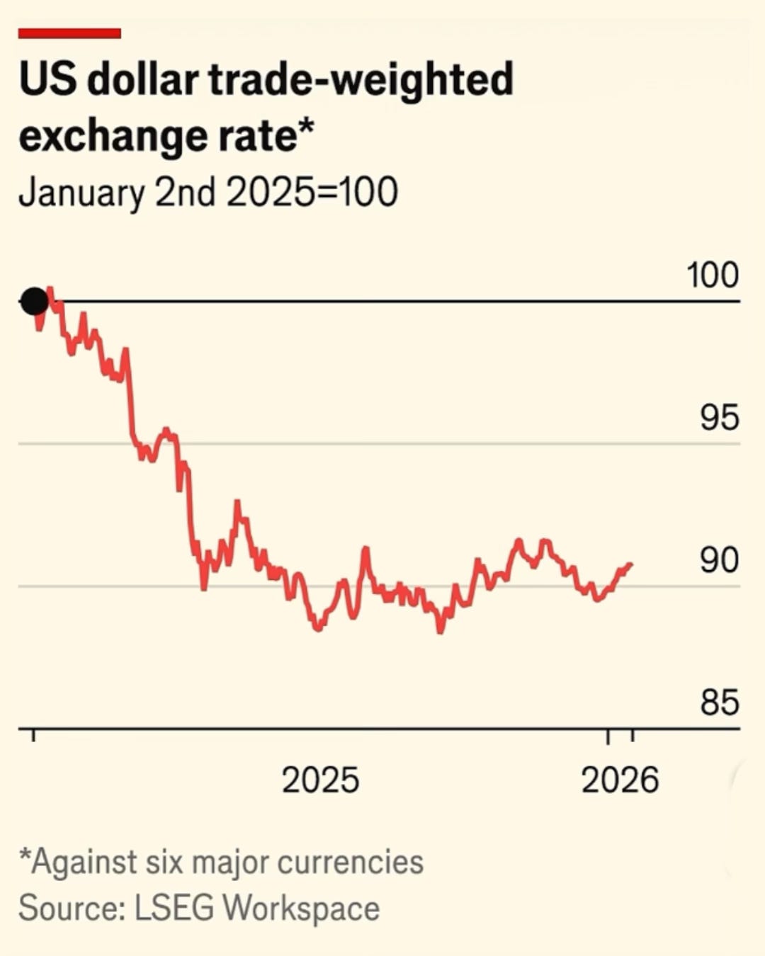 What matters, though, is what markets are doing. Since Trump first announced the tariffs, the US dollar has weakened by roughly 10%.